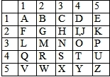 Еще одно изобретение древних греков – так называемый «квадрат Полибия». Греческий писатель Полибий (около 200 – 120 до н.э.) использовал систему сигнализации, которая была широко принята как метод шифровки. Он записывал буквы греческого алфавита в квадратную таблицу и замещал их числовыми координатами в таблице номером строки и номером столбца. Пары чисел передавались с помощью факелов. В варианте с латинским алфавитом для передачи, например, буквы «U» нужно было взять 4 факела в правую руку и 5 – в левую, или записать как цифру «45» (см. таблицу).