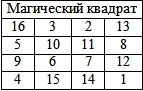 К шифрованию информации «призывались» и мистические силы. Так, например, рекомендовалось использовать «магические квадраты». В квадрат размером 4 х 4 вписывались числа от 1 до 16. Его магия заключалась в том, что сумма чисел по строкам, столбцам и диагоналям равнялась одному и тому же числу, равному 34. Впервые эти квадраты появились в Китае, где им и была приписана некоторая «магическая сила».
