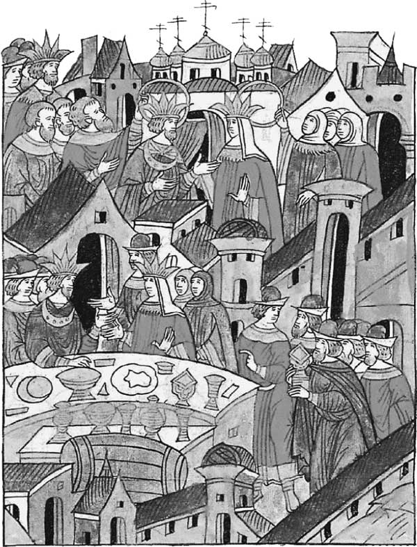 Иван Грозный на свадьбе Симеона Бекбулатовича. Лицевой летописный свод. XVI в.
