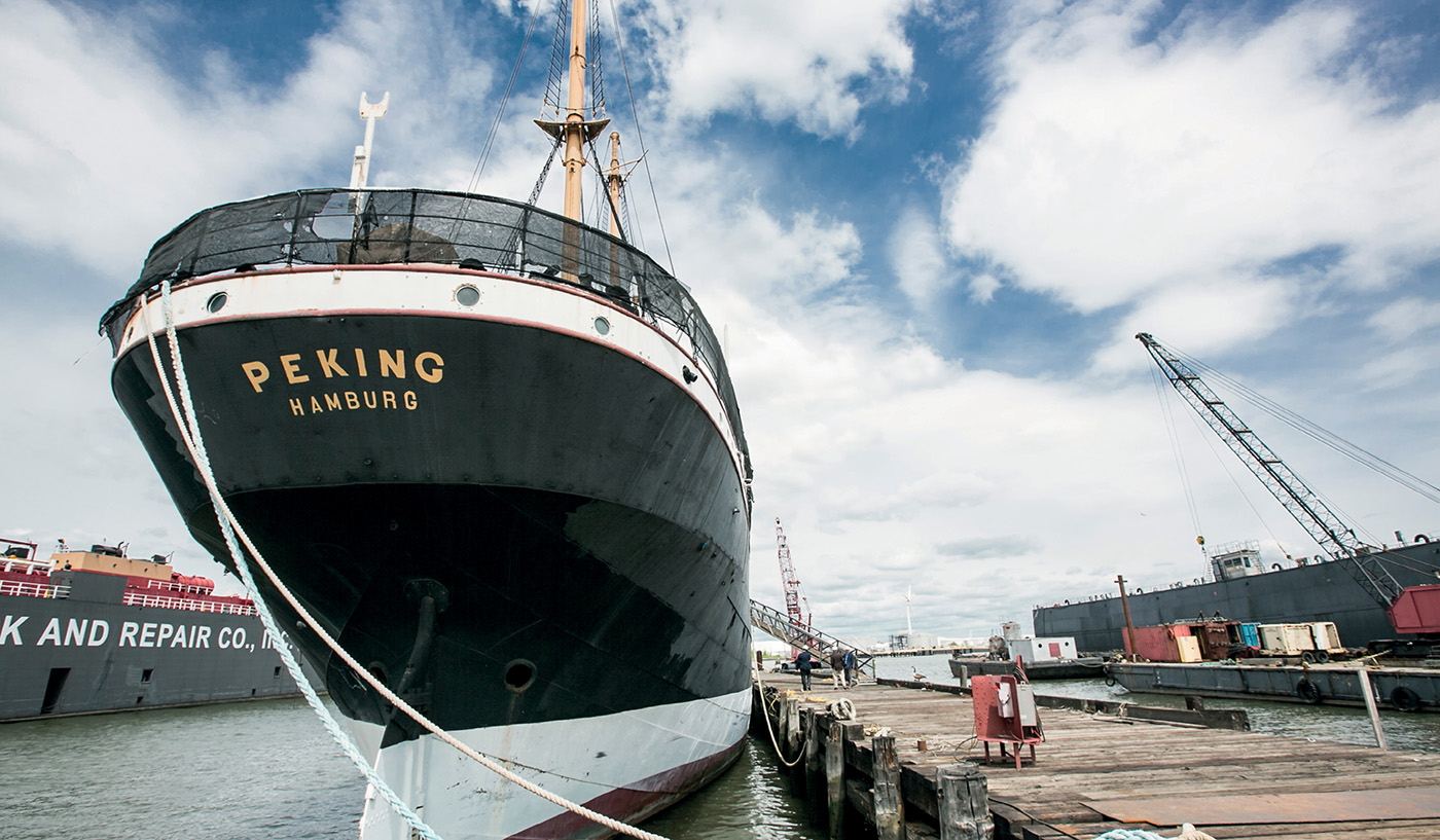 Am 25. Februar 1911 lief bei Blohm & Voss im Hamburger Hafen einer der letzten großen Hamburger Viermaster vom Stapel: die PEKING. Für die Reederei F. Laeisz segelte sie bis zum Jahr 1932 unzählige Male zwischen Hamburg und Südamerika, um wertvollen Salpeter nach Europa zu bringen. In ihrer über 100-jährigen Geschichte hat sie 34 Mal Kap Hoorn umrundet, zwei Weltkriege überstanden und mehr als 40 Jahre als Museumsschiff am Pier von Manhattan verbracht. Sie wurde von den Menschen dort viel beachtet, war aber zuletzt vom Alter schwer gezeichnet.