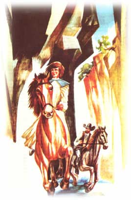 Красным светом залило солнце долину Кэбин-Галча. Пасущиеся бараны и овцы испуганно глазели на проезжавшую мимо кавалькаду. Роса дрожала в чашечках цветов, и птицы, весело порхая, пролетали над быстрыми, кристально чистыми ручьями. Смеющееся утро встало над Кэбин-Галчем. Жанна вспоминала, как она разъезжала по этим полянкам. С какой сладостной дрожью приветствовала она лесок, где впервые заговорила с Джимом. Как много здесь происходило, и что-то еще ждет их впереди!