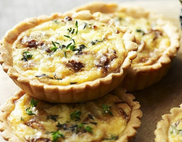 Нам понадобится:Тарталетки;Готовое куриное филе, нарезанное кубиками;250 гр. Шампиньонов мелкорубленных;100 гр. Твердого сыра, натертого на терке;1 луковица мелкорубленная;100 мл. Сливок;Соль и черный молотый перчик;Масло растительное;Зелень свежая – для украшения.