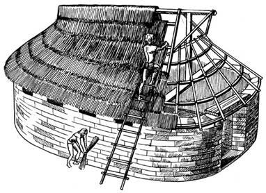 В темные века эллины строили жилища из дерева, соломы и сырцового кирпича, который изготавливался путем соединения глины с высушенной на солнце травой. Городские дома почти не отличались от сельских, представляя собой небольшие хижины с кирпичными стенами и соломенной крышей на деревянном каркасе. Одежда тех времен совсем не походила на облегающее микенское платье. Женщины и мужчины ходили в одинаковых дорических хитонах, окутывая тела грубой льняной либо шерстяной тканью, скрепленной бляхами или булавками.