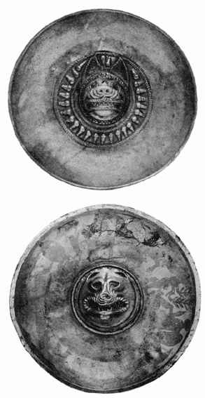 Серебряные патеры с гравированными сценами похорон. Экспонат археологического музея Барселоны