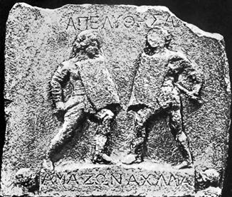 Еще одной группой добровольцев были гладиаторы-женщины, называвшиеся амазонками по аналогии с легендарным воинственным племенем. Списки победителей игр свидетельствуют о том, что силой и храбростью они часто превосходили мужчин. Одна из представительниц прекрасного пола (ее имя неизвестно) сражалась на колеснице. Гладиатор Ахиллия прекрасно владела мечом. Женщины принимали участие в смешанных боях, побеждая соперников-мужчин под яростные протесты зрителей, считавших такие зрелища непристойными.