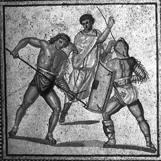 Уникальное явление под названием «гладиаторские бои» возникло из похоронных обрядов этрусков, господствовавших на Апеннинском полуострове в VIII–VI веках до н. э. Смертельная схватка у погребальных носилок являлась необычной формой жертвоприношения, совершаемого самими жертвами. Военнопленных, предназначавшихся для исполнения мрачного ритуала, именовали гладиаторами (от лат. gladius – «меч») по виду оружия, которое использовалось в ранних поединках. Римляне заимствовали идею погребальных схваток после изгнания этрусских царей. Первое упоминание о подобном сражении относится к 264 году до н. э. Бой на Бычьем рынке в Риме, устроенный на похоронах сенатора Децима Юния Брута Перы, проходил в строгом соответствии с древними традициями. Три пары гладиаторов бились в окружении родственников покойного, молча наблюдавших за поединком.