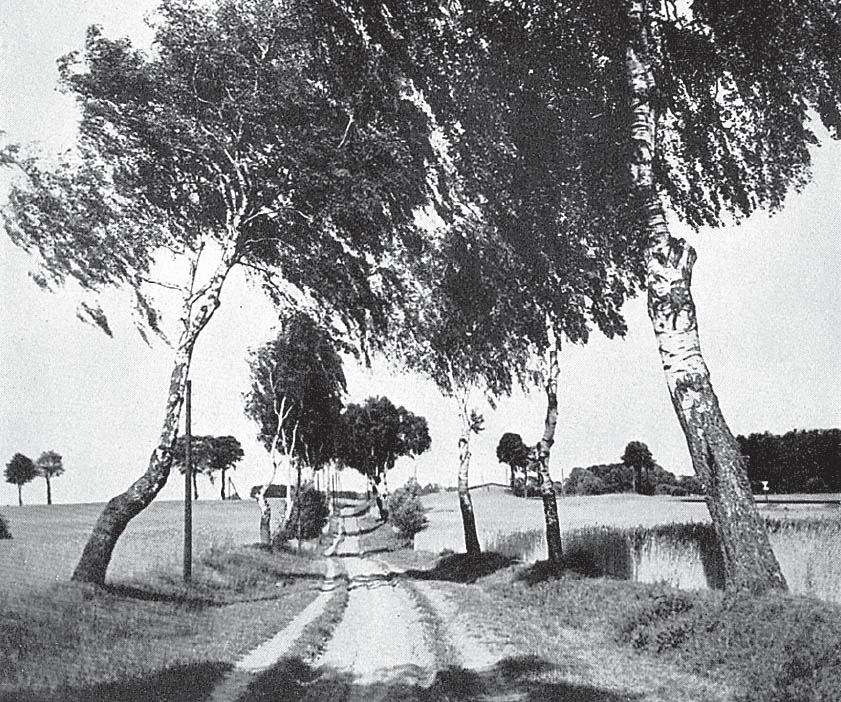 Vom Neßberg hinter dem Brink nach Norden und Osten voraus ist das Land weit und eben, eine ruhige Fläche. Hier und da nur ist ein Hügel, ein Stückchen Wald, ein buschumsäumtes, schilfdurchwachsenes Wasser, ein Kartoffelacker, ein Kornfeld. Aber das Gesicht dieses Landes als einer Fläche stört das nicht. Und dazwischen liegen die Höfe in der Sommersonne, im Frühlingswind, im Nordweststurmwetter, im schneeverwehten Wintertag: halb verträumt, halb wachsichtig.