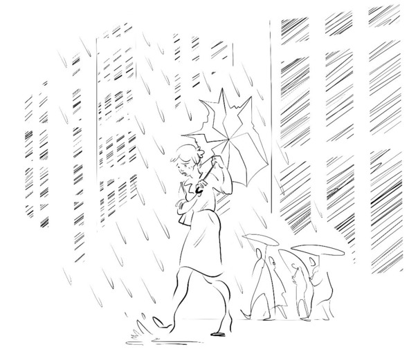 Очередной порыв ветра чуть не вырвал у нее из рук остатки зонта.