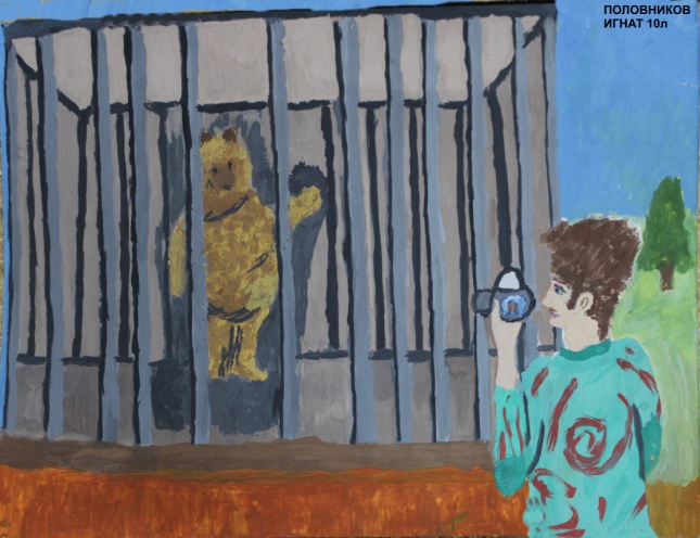 Прошло какое-то время. Григорий Иванович однажды предложил детям, давайте съездим в зоопарк и посмотрим, как живется в нем нашему медвежонку. Зоопарк находился в другом городе. Ехать нужно было на электричке. Когда приехали в зоопарк, то удивились большому количеству живших там зверей. Здесь были рыси, волки, лисицы и две клетки с медведями. В зоопарке нашли приют тигры, львы и жирафы, было много птиц. Григорий Иванович повел детей к клеткам с медведями. В первой жили медведь и медведица, в другой клетке сидел медвежонок. Он сидел с грустными глазами, казалось, не реагировал на подошедших к ним детей и взрослого мужчину. Ему на самом деле в этот день было грустно, так как он лишился друга, тоже медвежонка, с которым начал жить вместе, примерно того же возраста. Им вдвоем было совсем нескучно, кормили хорошо. Но вчера, его соседа увезли в другой зоопарк, Топа, а это был он, остался один. Медвежонок узнал гостей, но виду не подал, просто хотел проявить гордость. Живя в доме у Григория Ивановича, Топа даже не имел имени, а просто был медвежонком, Топой его назвала мама. Гости смотрели на него и думали, какой он стал красивый, они хотели, чтобы тот, как-то проявил себя. После длительного молчания их бывший медвежонок, показал признаки радости, подняв нос к верху, громко зарычал, махнув передними лапами. Все равно он оставался медвежонком. Гости оставили ему большой пакет с пряниками и удалились. Из детства в лесу Топа мало что помнил, а тот период, когда немного прожил в доме у Григория Ивановича, стал стираться из памяти. С детьми дружба только началась, но как играл с ними, не забыл. Топа очень хотел передать привет Лайпе и сказать, какая она хорошая собака, но не смог это сделать.