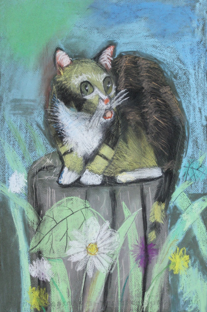 Когда Кука поднял шум, не вникнув, кто вышел во двор, бросившись на Леву, Котька подпрыгнула на месте, испугавшись, а лишь, мгновенье назад спокойно лежала. Но когда самодура усмирила бабушка, кошка опять облизывала себя, словно этот невоспитанный павлин, который назывался петухом, клюнул её, благородную кошку. Она вновь подпрыгнула от испуга, когда эта звонкоголосая Жужа, бросилась к малышу со своими любезностями так же, как в первый раз, а затем принялась чиститься.