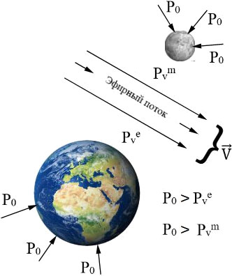 Все тела как-то двигаются относительно друг друга в «Эфирном Всемирном Океане» (рис. 3.1.3). Поэтому между ними существует поток эфира с некоторой скоростью