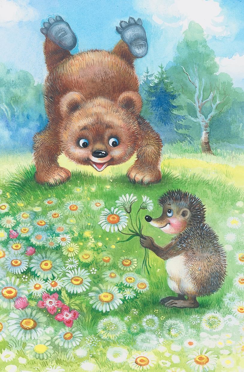 – Заяц! Поздравляю тебя с днём рождения! – сказал Ёжик и протянул Зайцу букет ромашек. – Ты их, Заяц, засуши, и зимой у тебя каждый день будет новое солнышко на тоненькой ножке!