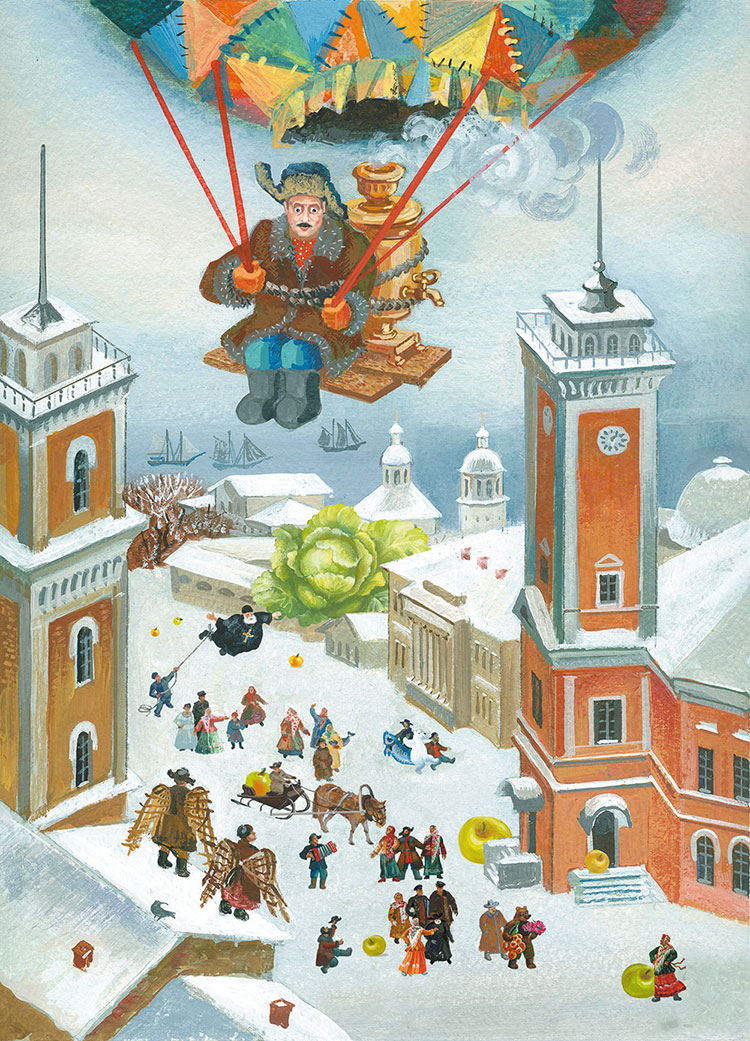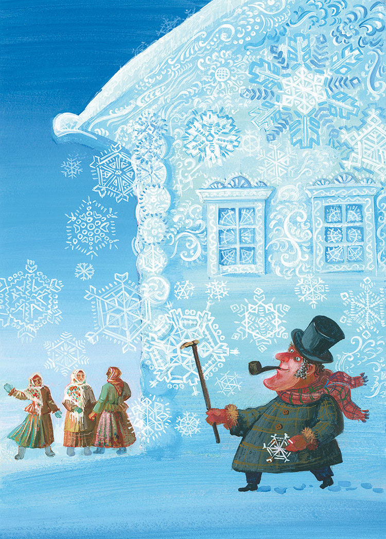 Как-то шел заморский купец, он зиму проводил по торговым делам, нашему языку обучался. Увидал украшенье – морожены песни – и давай от удивленья ахать да руками размахивать.