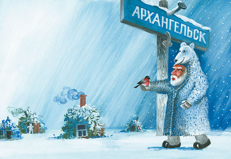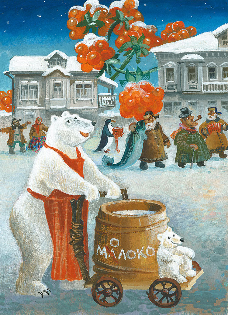 Белы медведи молоком торгуют – приучены. Белы медвежата семечками и папиросами промышляют. Птички всяки чирикают: полярны совы, чайки, гаги, гагарки, гуси, лебеди, северны орлы, пингвины.