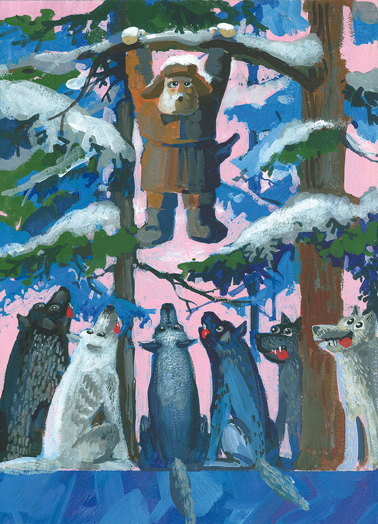 Волки кругом дерева сидят да зубами пощелкивают, подвывают, меня поджидают, когда свалюсь.