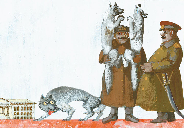 Ну, губернатор, полицмейстер, архиерей и други прочи сидят, важничают – ноги на волков поставили. А волки в теплом месте отогрелись, отошли и ожили. Да начальство за ноги! Вот начальство взвилось. Видимость важну потеряло и пустилось вскачь и наубег!