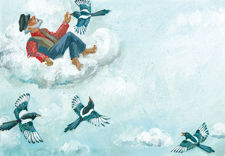 Схватил веревку – у меня завсегда веревка про запас, – петлю сделал да на тучу накинул. Притянул к себе. На тучу уселся и поехал. Мягко сидеть, хорошо!