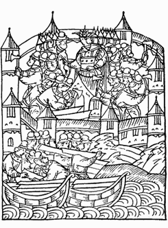 В летописи есть даже рисунок, изображающий, как тогда было принято, сразу и царский приказ и его исполнение. За два месяца Выродков организовал в углицких лесах изготовление всех частей будущей крепости, погрузил их на баржи и, спустив вниз по реке, быстро «смонтировал», как мы бы сейчас сказали, крепость на глазах врагов. Это и был знаменитый Свияжск, постройка которого предрешила падение Казани.
