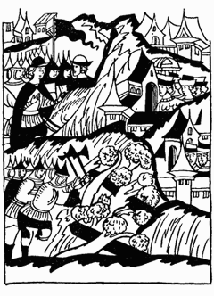 Но что это за большие здания стоят за крепким частоколом, на верху склона берега? Они выглядят среди маленьких домиков кузнецов, как большие деревья среди кустов. Из кирпичных труб, над коническими кровлями этих зданий, валит густой дым, иногда вырывается пламя. Это недавно построенный московскими князьями Пушечный Двор – крупнейшее по тому времени литейное предприятие. Здесь плавили медь и другие металлы и отливали из бронзы пушки. Всякому ясно, как много значил Пушечный двор для молодого Русского государства. От его работы во многом зависела мощь всей страны.