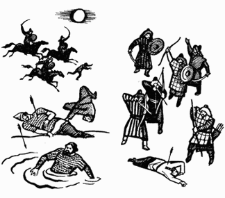 Ревела буря, дождь шумел;Во мраке молния блистала,И беспрерывно гром гремел,И ветры в дебрях бушевали.Ко славе страстию дыша,В стране суровой и угрюмой,На диком бреге ИртышаСидел Ермак, объятый думой.Товарищи его трудов,Побед и громозвучной славыСреди раскинутых шатровБеспечно спали близ дубравы.«О, спите, спите, – мнил герой, —Друзья, под бурею ревущей,С рассветом глас раздастся мой,На славу и на смерть зовущий».Кто не знает этой народной песни! Слова ее – несколько измененная «Дума», которую написал около полутораста лет назад известный поэт Кондратий Рылеев. В песне поется о гибели Ермака. И в самом деле, Ермак погиб во время неожиданного ночного налета войск Кучума на лагерь русских, расположившихся на берегу Иртыша. Наверное, он пытался спастись, прыгнув с берега в стоявшую на реке лодку. Но тяжелые кольчуги, не раз оберегавшие его в бою, на этот раз стали причиной его гибели. Трудно даже очень сильному человеку, каким, вероятно, и был Ермак, далеко прыгнуть в полном вооружении, которое весило тогда (все вместе) пуда полтора-два. Еще труднее выплыть, если он не допрыгнул до лодки. А может быть, Ермак еще и был ранен; ведь и бежать и плыть ему пришлось, конечно, под градом вражеских стрел.
