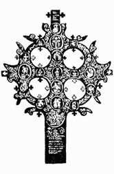 Более шестидесяти лет тому назад попытались срисовать и издать надпись на кресте. Но прочли при этом не все, и в книге И. И. Толстого и Н. П. Кондакова «Русские древности в памятниках искусства» напечатали шифр неточно.