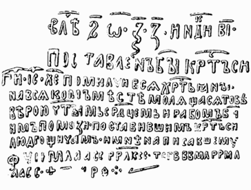 Вы уже знаете, что таинственный шифр на людогощинском кресте – не единственная шифрованная древнерусская надпись. И еще в начале нашего века Михаил Несторович Сперанский разработал основные приемы чтения таких тайнописей. Расположение букв одного слова в разных строках, о котором вы уже читали, не было единственным способом шифровки. М. Н. Сперанский выяснил, что очень часто наши предки пользовались для шифровки тем широко известным в их времена обстоятельством, что буквы имели и значение цифр (а – 1, в – 2, i – 10, к – 20 и т. д.). Еще в прошлом столетии многие помнили об этом давно утраченном цифровом значении букв и пытались решать с его помощью разные задачи. Вспомните, например, как в «Войне и мире» Пьер Безухов убеждает себя самого, что именно он должен убить Наполеона, подставляя цифры вместо букв своей фамилии, пытаясь получить из них ту же сумму, что выходит из букв имени Наполеона.