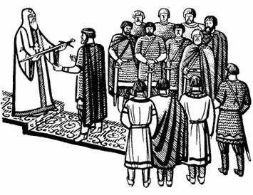 И теперь псковичи задумали решающую вылазку, чтобы отбросить противника от стен Пскова. Тогда в псковском Троицком соборе произошла торжественная церемония. При большом стечении народа князь Довмонт вошел в собор и положил свой меч на алтарь. И целая процессия служителей церкви во главе с игуменом торжественно проследовала к алтарю. Игумен Сидор взял меч и опоясал князя этим мечом. Церемония эта была настолько важна, что попала даже в новгородскую летопись. Наверное, она была нужна, чтобы поднять дух воинов, выступавших против врага. Князю-воеводе торжественно вручали меч как символ доверия государства и залог победы.