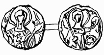 На другой стороне пломбы – фигура мужчины, тоже в богатой одежде, с нимбом вокруг головы. В правой руке он держит грозное копье, в левой – щит.
