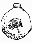 Наша пломба гораздо крупнее тех, какие вы знаете. Она плоская, диаметром с наш рубль. Под ушком, в которое когда-то продет был шнурок, на обеих сторонах пломбы можно различить изображения и полустертые буквы. Изображение с той и другой стороны одно и то же. Оно помещается в центре. Это перчатка с правой руки. Ясно видны длинные, изящно сделанные пальцы и расширение у кисти – «крага». Между большим и указательным пальцами зажат предмет, в котором узнали, правда несоразмерно маленький по сравнению с перчаткой, посох с острым наконечником и спирально загнутой рукоятью.