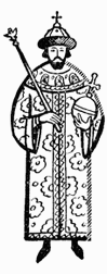 В старинном «Сказании о князьях Владимирских» говорилось о том, как византийский император Константин Мономах послал на Русь, своему внуку Владимиру, те самые знаки императорской власти, которыми пользовался сам, в том числе «крест со своей выи» (шеи), цепь со своих плеч, доставшуюся ему еще от римского императора Августа, и «венец со своей главы». Этот венец – корону – и носили с тех пор киевские, владимирские, а потом московские великие князья.