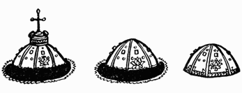 Прошло почти полвека, прежде чем этой вещью занялся один из крупнейших русских археологов, Александр Андреевич Спицын. Он обратил внимание на форму золотой шапки и ее украшения. Если снять с шапки Мономаха окаймляющий ее низ дорогой соболиный мех (а он снимается очень просто) и завершающий шапку крест (а он тоже приделан позднее), то перед нами окажется не более не менее, как золотая тюбетейка, похожая по форме на те, какие и сейчас носят в Средней Азии. Она даже сделана из восьми расширяющихся книзу пластин: ведь тюбетейка шьется обычно из восьми клиньев. На пяти из восьми пластин шапки помещено изображение цветка лотоса. Такие несколько измененные, как говорят, «стилизованные» фигуры хорошо знали в средние века на Востоке и называли «арабский цветок».