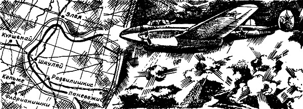 В середине августа полк майора Г. А. Мартьянова, не прекращая боевой работы, перелетел на аэродром Паневежис. Экипажи видели с воздуха литовскую землю – перелески, зеленые поляны, удивительные зеркальные озера, тихие полноводные реки с небольшими хуторами на берегах. Над всей землей стлался горький дым войны. Видели авиаторы с высоты и хмурые воды Балтийского моря.
