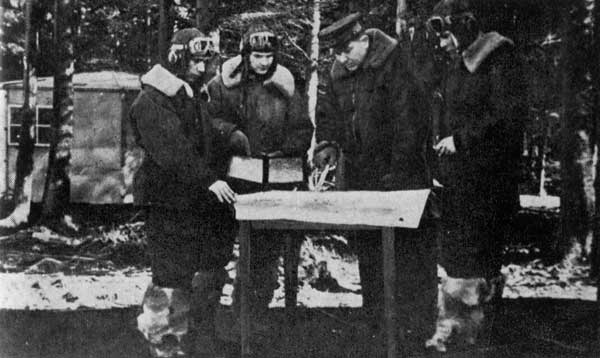 Перед вылетом на воздушное фотографирование Кенигсберга (слева направо): В.Г. Погорелов, П.В. Шаповалов, Г.А. Мартьянов, М.М. Глебов
