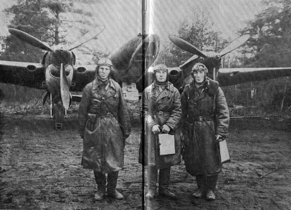 Слева направо: штурман капитан Г. Гармаш, лётчик капитан С. Володин, стрелок-радист С. Ремизов