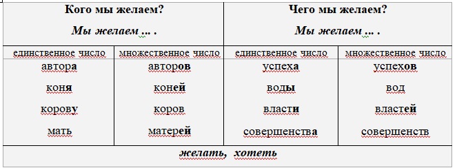 Внимание! Если предмет является объектом желания, после глагола употребляется родительный падеж (кого? чего?).