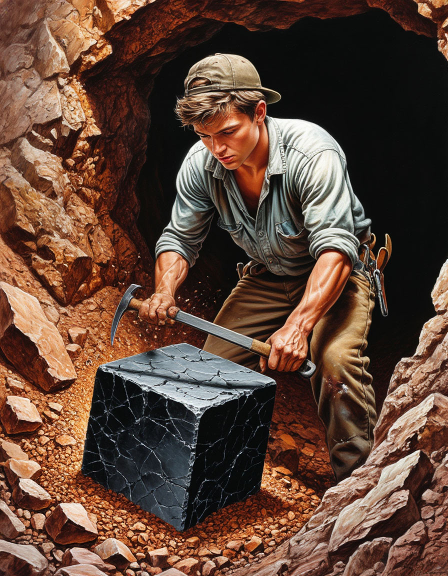Они спустились глубже. Воздух стал гуще, насыщенный пылью и гарью. Геннадий первым подошёл к жиле и с размаху ударил киркой.