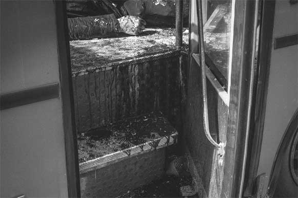 В салоне автобуса лежало несколько безжизненных тел. Все старики. Между кресел – тело пожилого мужчины в медицинской маске. Она была спущена на подбородок. На лбу – очки. Черные зрачки уставились куда-то в потолок. Кто-то из пассажиров ехал с продуктами. Куриные яйца упали на пол и разбились. Их содержимое вытекло и перемешалось с человеческой кровью и вытекшим из пачки молоком.