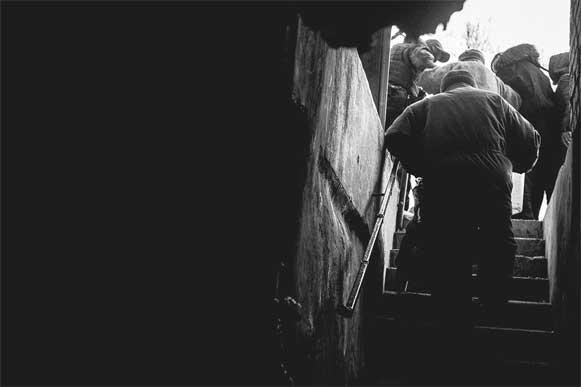 Я попросил сделать пару кадров, Даша стала позировать. Глядя на нее, невозможно было поверить, что уже месяц она живет на войне. Ее глаза не были теми, что показали на фотовыставке «Взгляни в глаза Донбасса». Даше удалось сохранить ту детскую беззаботность, чего нельзя сказать о ее старших друзьях. Дети, что не выходили из подвала, были абсолютно такими же, как с фотографий военкоров. Я сделал несколько кадров. В этот момент вновь начала греметь артиллерия.