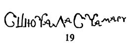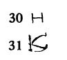 Кроме того, рисовать носы показалось Тефи слишком трудным делом; наконец, ее усталая ручка нечаянно нацарапала перевернутый нос, на этот раз рисунок опять не удался ей, и вместо носа на бересте появился странный знак; в конце концов рассерженные Тегумай и Тефи стали обозначать им звук «н». Для жесткого звука «к» они нарисовали злобный рот щуки, а позади него копье или палку.