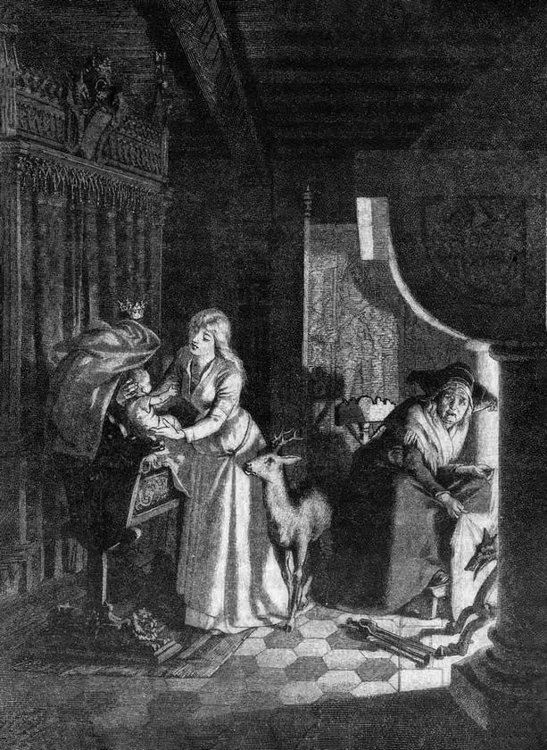 Вот старая ведьма и приняла на себя внешность королевиной служанки, вошла в комнату, где лежала родильница, и сказала: «Пожалуйте, ванна для вас готова, она вам будет полезна и придаст вам новых сил; пожалуйте скорее, пока не остыла вода».