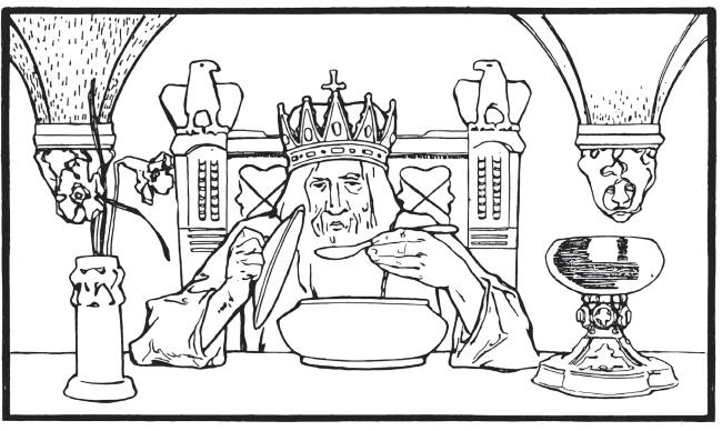 Но у того короля был странный обычай: за каждым обедом, когда со стола уже все было убрано и никто, кроме его самого, за столом не оставался, доверенный слуга должен был подавать ему еще одно блюдо. Но блюдо это было закрыто, и сам слуга этот не знал, что было на блюде, да и никто не знал, потому что король не вскрывал блюда и не отведывал его, пока не оставался один-одинешенек в комнате.