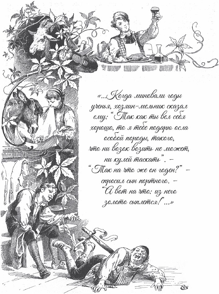 «Столик-Сам-Накройся, золотой осел и дубинка из мешка». Художники – Филипп Грот-Иоганн, Роберт Лайвебер. 1892 г.