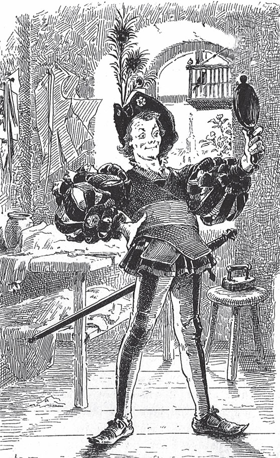 Посмотрел, сосчитал и видит – семь мух насмерть убил: тут же и ноги протянули, сердешные. «Вот каков я храбрец! – сказал он и сам подивился своей удаче. – Об этом весь город должен узнать!» И тут же выкроил он себе широкий пояс, сшил его и на нем большими буквами вышил: «Единым махом семерых побивахом!»