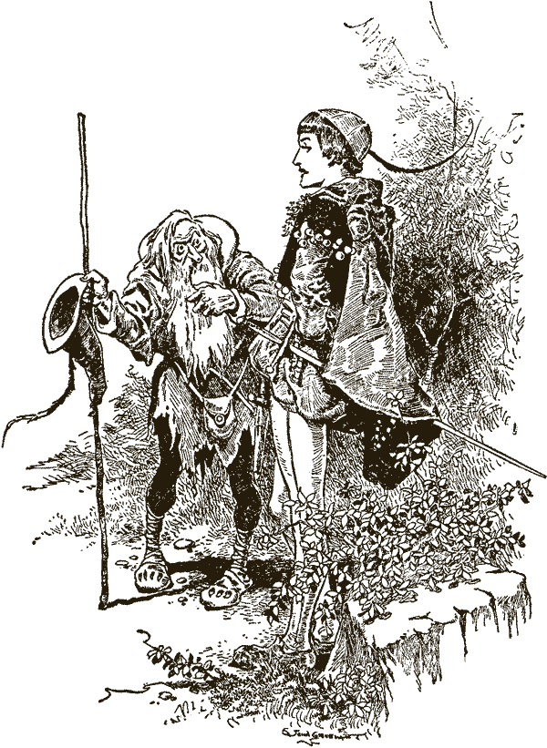Стали путешественники бегать по полю и тыкать палкой в мышиную нору, но всё было напрасно: Мальчик-с-пальчик всё глубже и глубже забирался. Когда совсем стемнело, отправились путники своей дорогой с пустым кошельком.