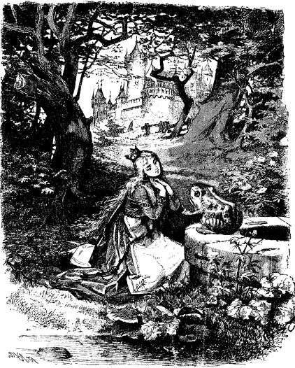 Плачет она, заливается, как вдруг слышит чей-то голос: «Да что с тобой, королевна? От твоего плача и в камне жалость явится». Оглянулась она, чтобы узнать, откуда голос ей звучит, и увидела лягушонка, который высунул свою толстую уродливую голову из воды. «Ах, так это ты, старый водошлеп! – сказала девушка. – Плачу я о своем золотом мячике, который в колодец упал». – «Успокойся, не плачь, – отвечал лягушонок, – я могу горю твоему помочь; но что дашь ты мне, если я тебе игрушку достану?» – «Да все, что хочешь, милый лягушонок, – отвечала королевна, – мои платья, жемчуг мой, каменья самоцветные, а еще в придачу и корону золотую, которую ношу».