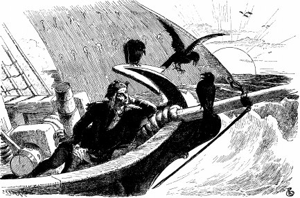 Случилось, однако же, что в то время, когда они мчались в открытом море, верный Иоганн, сидевший на носу корабля и кое-что наигрывавший на скрипке, увидел у себя над головою в воздухе трех воронов, которые летели вслед за кораблем с родины королевны. Тогда он перестал играть и стал прислушиваться, о чем они между собою переговаривались (он хорошо разумел их язык).