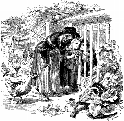 Гензель и Гретель так перепугались, что даже выронили свои лакомые куски из рук. А старуха только покачала головой и сказала: «Э-э, детушки, кто это вас сюда привел? Войдите-ка ко мне и останьтесь у меня, зла от меня никакого вам не будет».