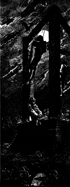 Пошел он по дороге к лесу, и она привела его к виселице; изморенный дневным жаром, терзаемый злобою и ненавистью, он бросился на землю около виселицы.