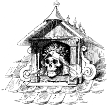 Но чуть только он закрыл глаза, собираясь заснуть, оба ворона, сидевшие на головах висельников, со зловещим карканьем слетели к нему и выклевали ему очи.