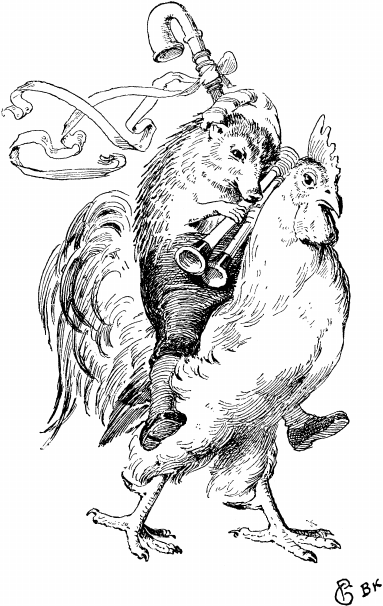 Случилось как-то ехать мимо того дерева королю, заблудившемуся в лесу, и вдруг услышал он музыку. Удивился король и послал своего слугу узнать, откуда она слышна. Тот осмотрелся и увидел только на дереве петушка, на котором сидел верхом еж и играл на волынке. Приказал король слуге своему спросить, зачем он там сидит, да и, кстати, не знает ли он, какой дорогой следует ему вернуться в свое королевство?